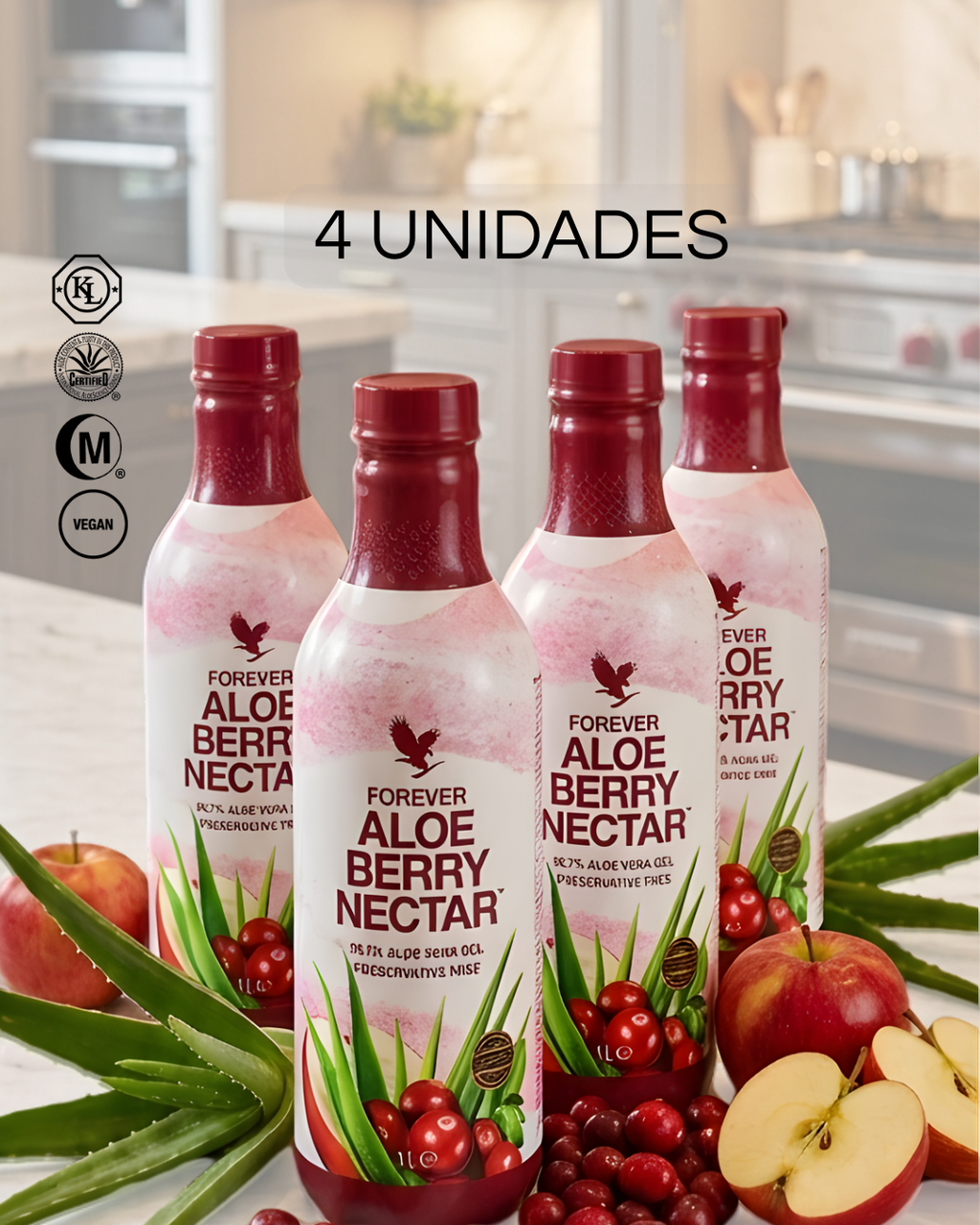 Bebida feita do puro gel de Aloe acrescida de um toque suave e adocicado de uvas do monte (cranberry) e maçã.
