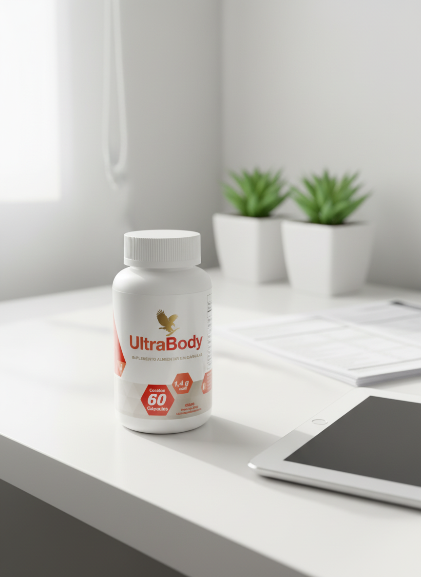 Com cápsulas de fácil consumo, o UltraBody pode ser utilizado em rotinas corridas, sempre respeitando a indicação diária do rótulo. Produto destinado a maiores de 19 anos. Não é medicamento, não substitui uma alimentação equilibrada e seu uso deve ser alinhado a hábitos saudáveis. Pessoas com condições específicas (gestantes, lactantes, crianças, idosos, indivíduos com enfermidades ou que fazem uso de medicamentos) devem consultar médico ou nutricionista antes do consumo. Alérgenos e informações de lactose/glúten devem ser verificados exatamente conforme o rótulo. Armazene em local fresco, seco e ao abrigo da luz. Não exceda a ingestão diária recomendada. A Forever Living segue rigorosos padrões de qualidade e rastreabilidade, atendendo às normas brasileiras aplicáveis. Evite alegações terapêuticas e utilize o produto como parte de um estilo de vida saudável.